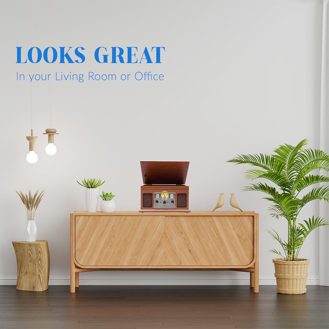 Crafted in a classic wooden vintage finish, this music system adds a timeless charm to any space. Whether you’re setting up your music corner at home or gifting it to a true music enthusiast, the Hiniso 8-in-1 turntable delivers powerful performance, unmatched versatility, and rich stereo sound with built-in speakers.